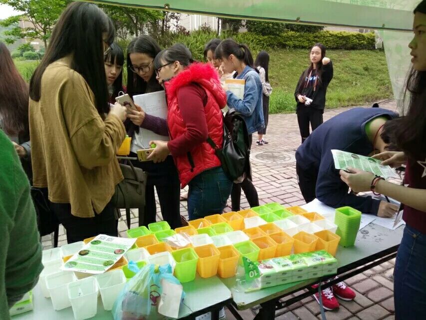 自2011年3月第一届全国大学生绿植领养活动启动至今,已经先后进入上千所大学为学生免费派发绿植种子,成功种植绿色植物上百万株。为继续将这份爱心传播,我院于2016年4月13日在校园超市门口开展了一场以“绿色校园行,有种你就来”为主题的绿植领养活动。