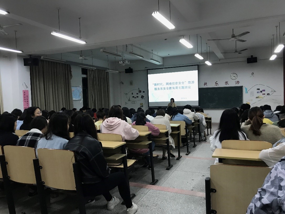 2019年4月16日,福万楼3301教室开展旅游服务系“新时代,网络信息安全”安全教育活动,本次安全教育班会由辅导员郑秋玲老师主讲。