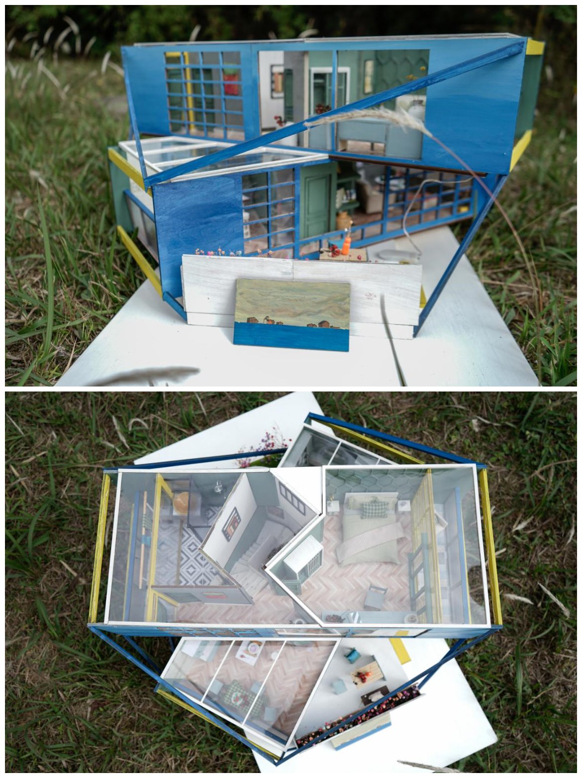 大到整体的建筑,每一件家具,小到挂画、抱枕、各种摆件,甚至连铺装的木地板和大理石,都是同学们设计和制作的。