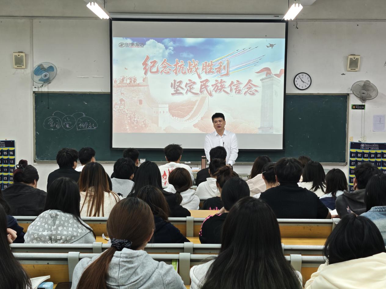 为铭记历史,传承伟大抗战精神,在中国人民抗日战争暨世界反法西斯战争胜利80周年之际,10月21日下午,我校党委书记张林走进旅游服务系2025级会展策划与管理、空中乘务专业课堂,以《纪念抗战胜利 坚定民族信念》为题讲授形势与政策课第二讲。