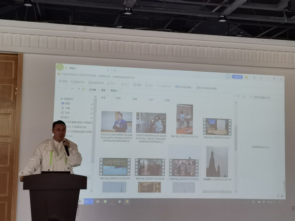 人物形象设计专业的老师李宗轩作为教师代表,在分享会上展示了精美的图片和视频,并做了精彩的发言。首先,他感谢学校举办研学活动,让师生有机会走出国门,感受不同国家的教育风格,了解泰国风土人情,拓宽视野。其次,他对泰国的美食和宜人的气候赞不绝口。同时,他向现场的师生表达道,研学经历是打破刻板印象最为直观且有效的方式。