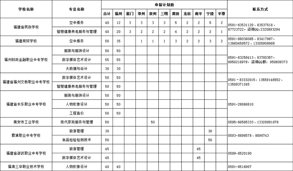 福建华南女子职业学院2025年福建省五年制高职教育分地市分专业招生计划