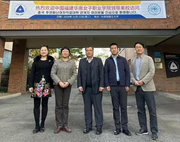 11月12日,访问团一行首先访问了韩国大邱加图立大学。韩国大邱加图立大学成立于1914年,至今已有110年办学历史,是与华南女院一样的百年老校,当时是著名的韩国晓星女子大学,1994年开始招收男生,改称加图立大学。访问团一行参观访问的是该校晓星校区,占地1300多亩,目前有16个学院80个专业,600名教授,在校生18000多名,其中中国留学生约1000余人。