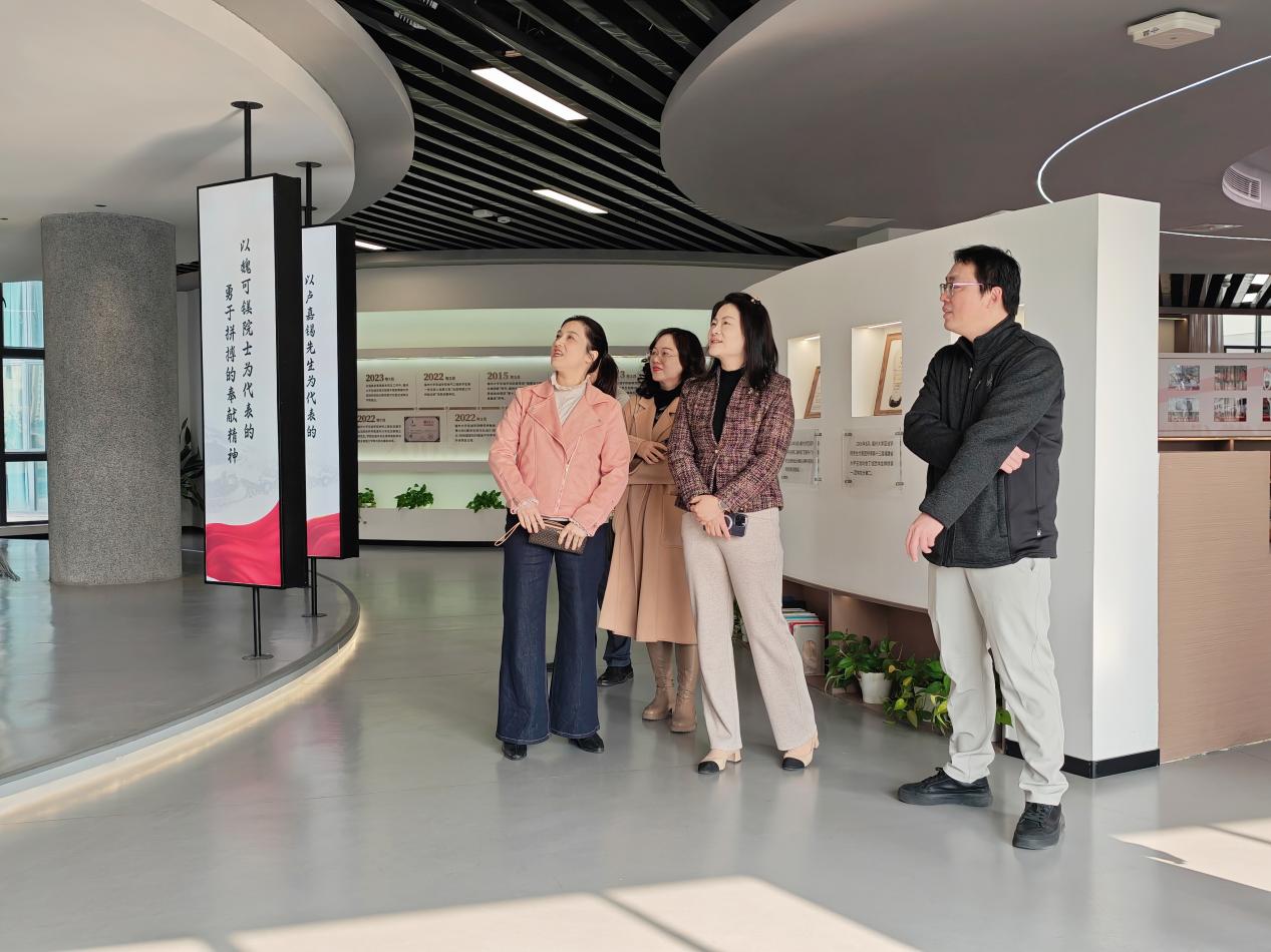 在苏童院长助理、陈小欢馆长的陪同下,我校一行重点参观了该院融合“校史馆、阅览空间(主题馆)、校友之家(校友馆)”的“三馆合一”创新空间项目。该项目以“无界校史、共融共享”为理念,实现“空间美学、功能需求、文化滋养”的三重统一。黄磊晶副校长一行对该空间的设计理念及创新模式表示赞赏,认为这对我校的空间设计具有借鉴意义。