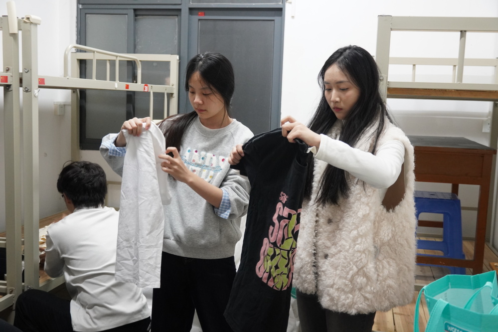 活动当天,志愿者们早早抵达各捐衣点,搭建桌子准备精美小礼品、准备好收纳袋与登记表格,以饱满的热情迎接前来捐赠的师生。师生们踊跃响应,一件件衣物承载着师生们的深情厚谊,不少同学还主动分享活动信息,带动身边的室友、朋友一同参与,用实际行动为公益助力,让爱心在校园中不断传递。捐赠结束后,志愿者们认真仔细将衣物进行分拣整理,大家分工明确、默契配合,逐一对回收的衣物进行细致检查,认真挑出干净无损的衣物。