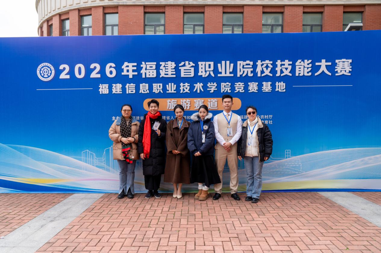 2026年1月8日,2026年福建省职业院校技能大赛高职组旅游赛道赛事在福建信息职业技术学院圆满收官。本次赛事高手云集,全省共计69支参赛队伍同台竞技,角逐桂冠。我校选派的两支参赛队伍不负众望,凭借扎实的专业功底与亮眼的现场发挥,强势包揽双金奖,创下我校在该赛事的历史最佳战绩。