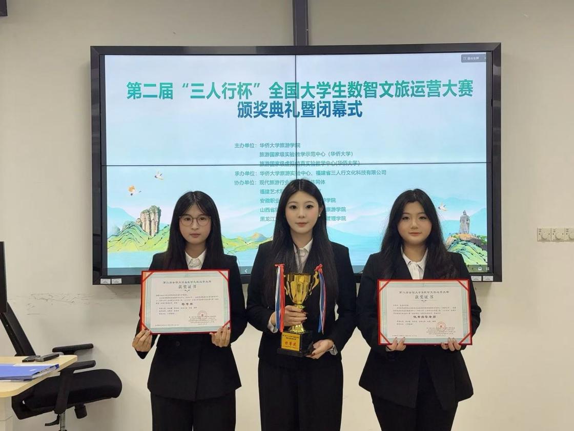 日前,在由旅游国家级实验教学示范中心(华侨大学)、旅游国家级虚拟仿真实验教学中心(华侨大学)主办的2025年第二届“三人行杯”全国大学生数智文旅运营大赛(酒店赛道)中,我校酒店管理与数字化运营专业两支队伍凭借扎实专业功底、出色数智运营能力与默契团队协作,从全国数百支精英队伍中脱颖而出,双双斩获全国特等奖重磅荣誉,展现华南学子硬核实力!