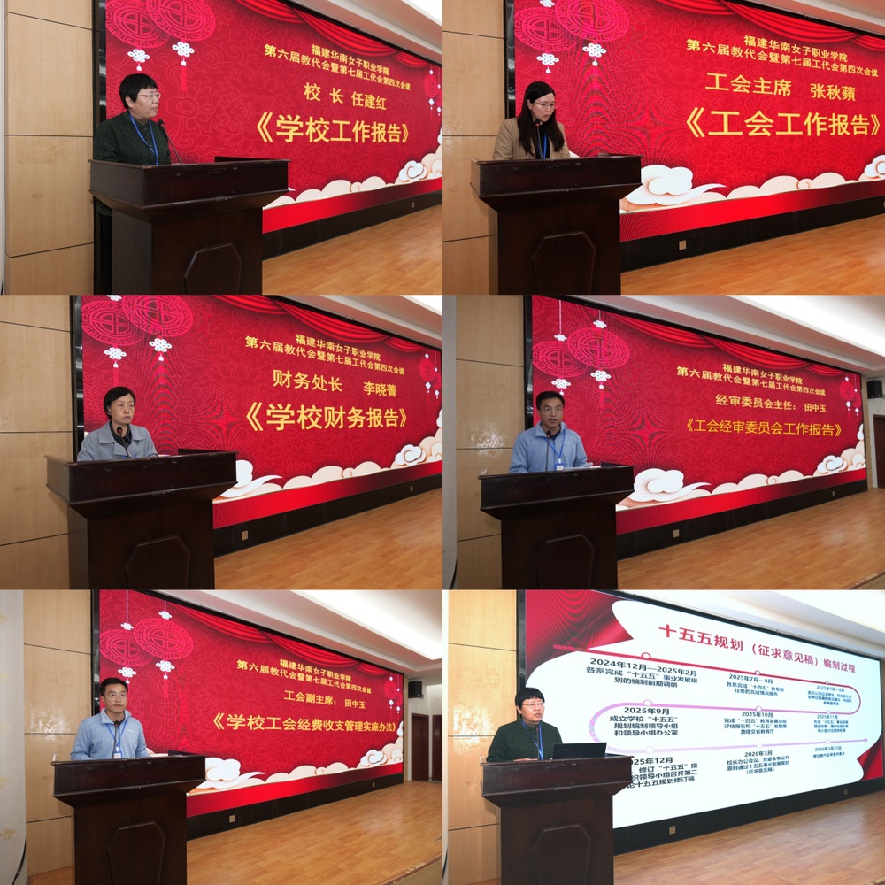 3月25日,福建华南女子职业学院第六届教代会暨第七届工代会第四次会议顺利召开。113名正式代表和15名列席代表参加了会议。会议由大会执行主席、工会主席、党委副书记张秋蘋主持。