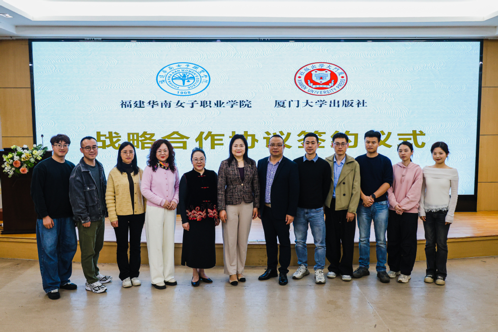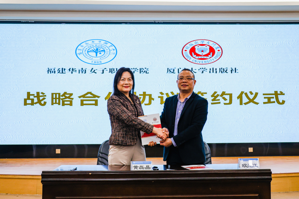 3月30日下午,福建华南女子职业学院与厦门大学出版社战略合作协议签约仪式在学校余宝笙报告厅举行。我校副校长黄磊晶、教务处处长潘少芳、图书馆馆长陈峰,厦门大学出版社副社长欧光江、社长助理张佐群及双方相关部门同志出席仪式。