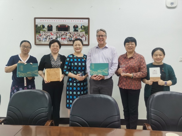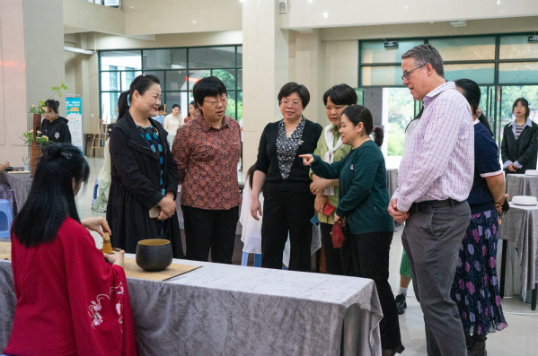 当日恰逢我院职业教育活动周期间,Roy Robinson主任饶有兴趣地观摩了学生展示的插花、国画、书法、剪纸、古筝、点茶等中国传统文化技艺,并参观了校史馆,对中国传统文化和我院百年历史有了更深入的了解,他对学院悠久的办学历史和传承祖国优秀文化的热情表示高度的赞赏。