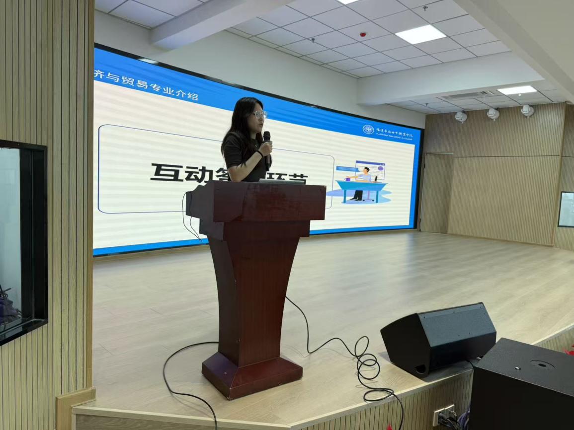 本次新生见面会由专业主任叶知秋老师主持。他以风趣幽默、案例结合的方式,系统全面地介绍了国际经济与贸易专业的核心知识体系,并从就业领域、教育培养、职业证书、岗位方向、学科竞赛及实战项目等多个维度,为新生们答疑解惑,引导新生学习、认识、了解自己的专业,帮助大家树立专业认知、做好学业与职业规划。