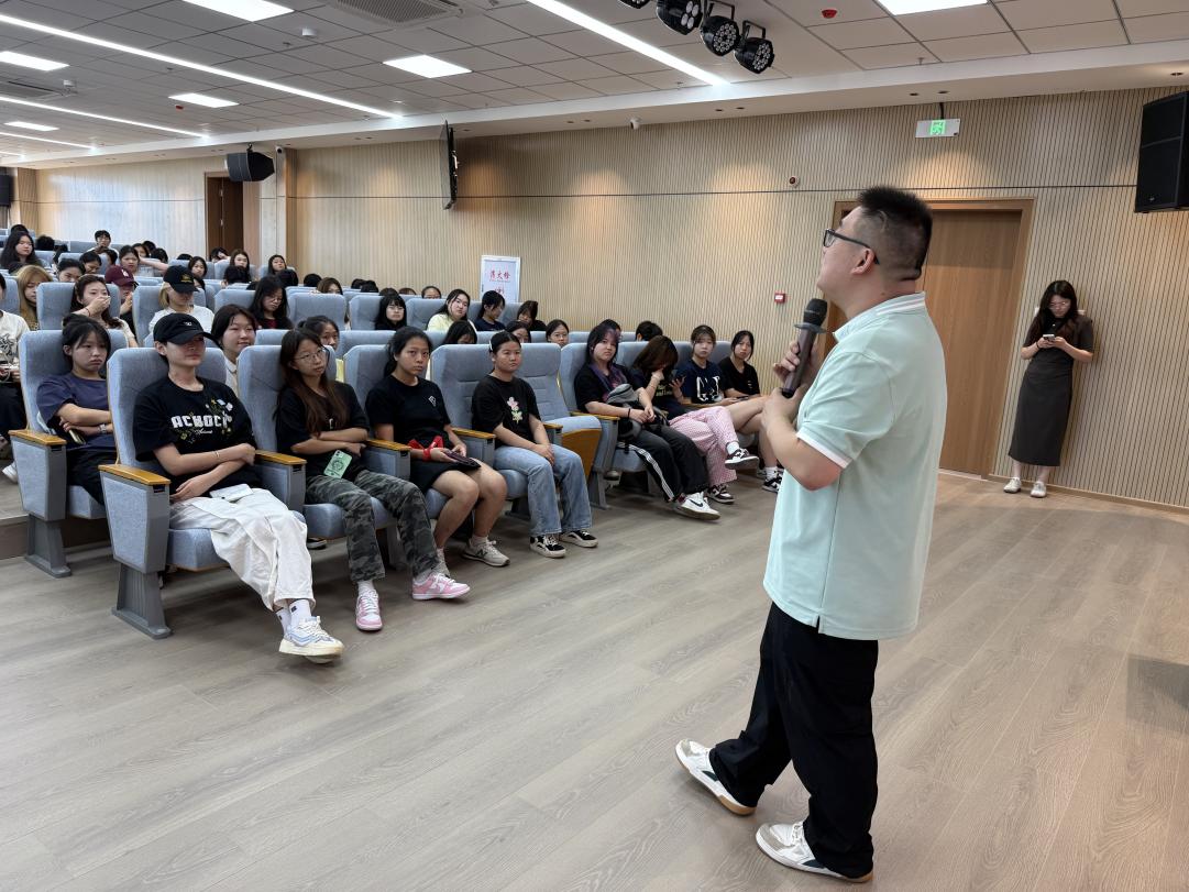 在互动环节,叶知秋老师与林新瑶老师为学生们答疑解惑。面对新生们踊跃提出的各类问题,小到专业课程学习方法,大到行业发展前景,老师们都予以耐心细致的解答。”现场氛围轻松热烈,新生们的疑惑被逐一解开,也增强了对专业的认同与学习信心。