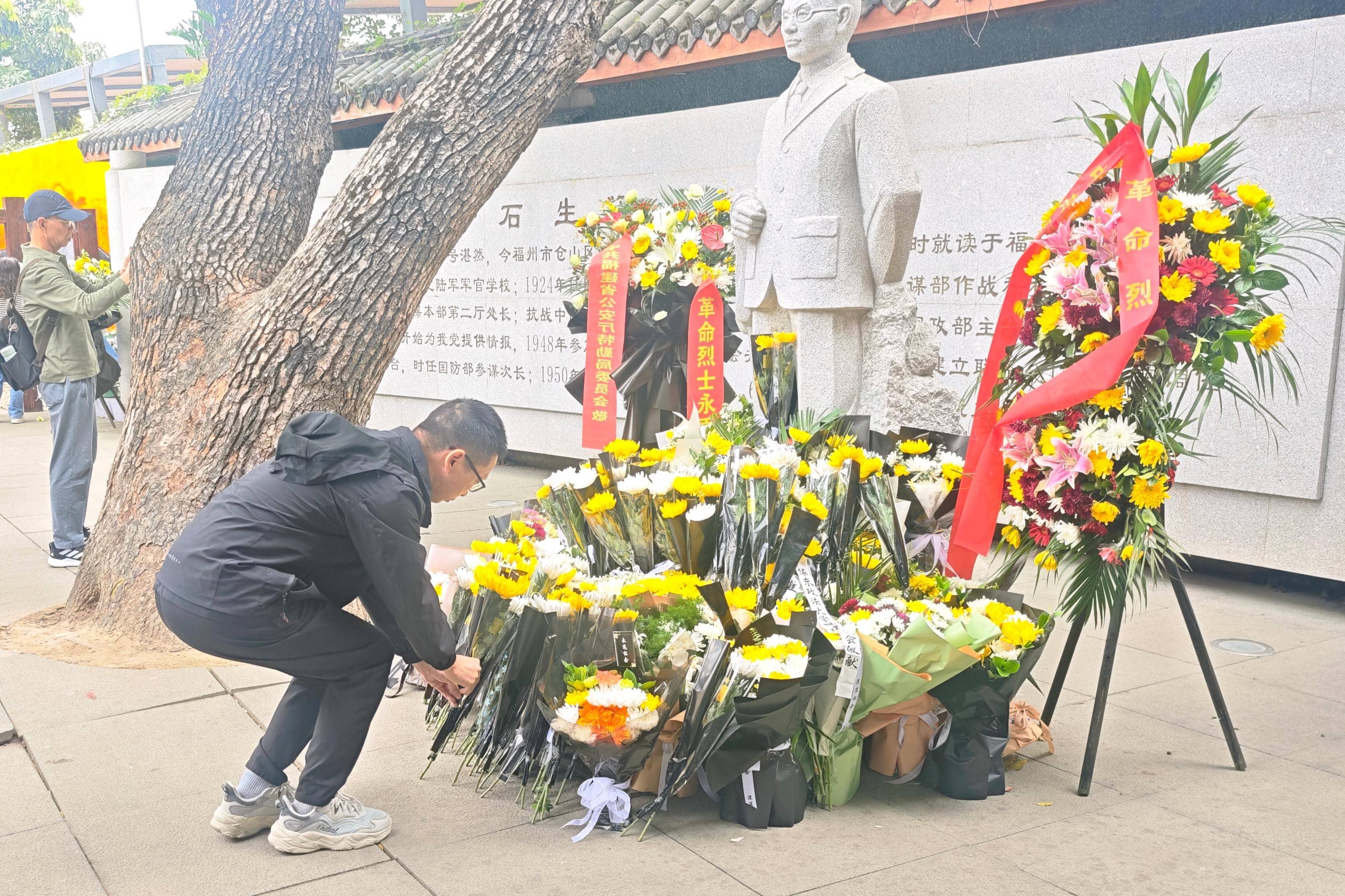 在故居门前的雕像前,党支部代表有序敬献鲜花,向吴石将军致以崇高敬意,传承其舍生取义的革命精神。