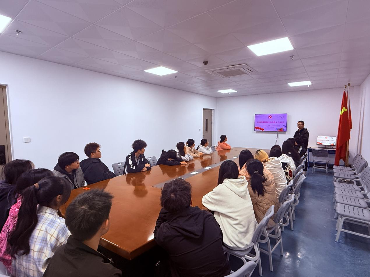 为深入学习贯彻习近平新时代中国特色社会主义思想,全面落实立德树人根本任务,扎实推进高校思想政治工作,低空经济产业学院于2025年12月5日在2号教学楼党团活动室开展“中国共产党人的精神谱系”专题宣讲活动。活动由学院低空经济党支部书记宋虹财同志主讲,学院学生会全体成员参加学习。