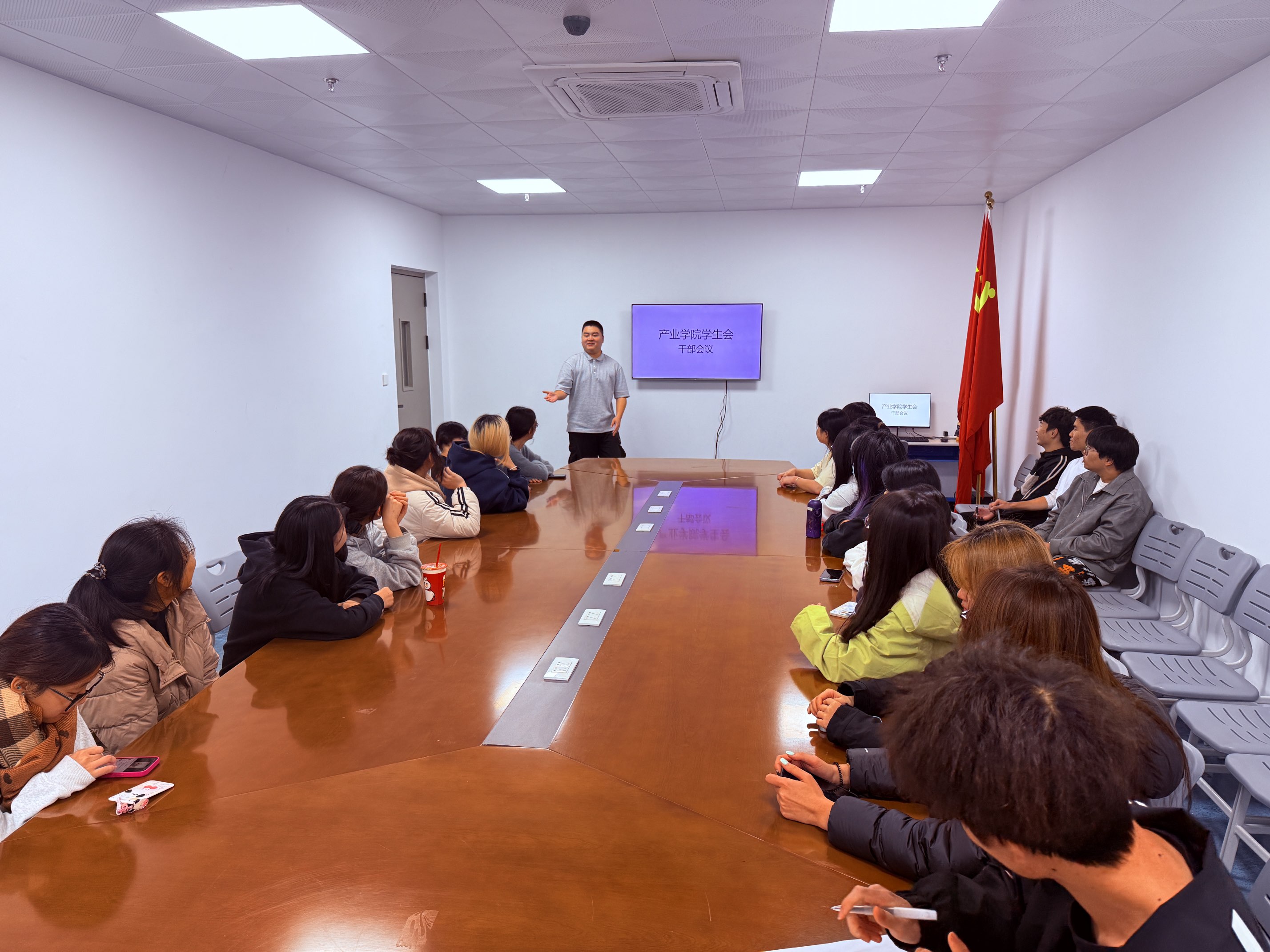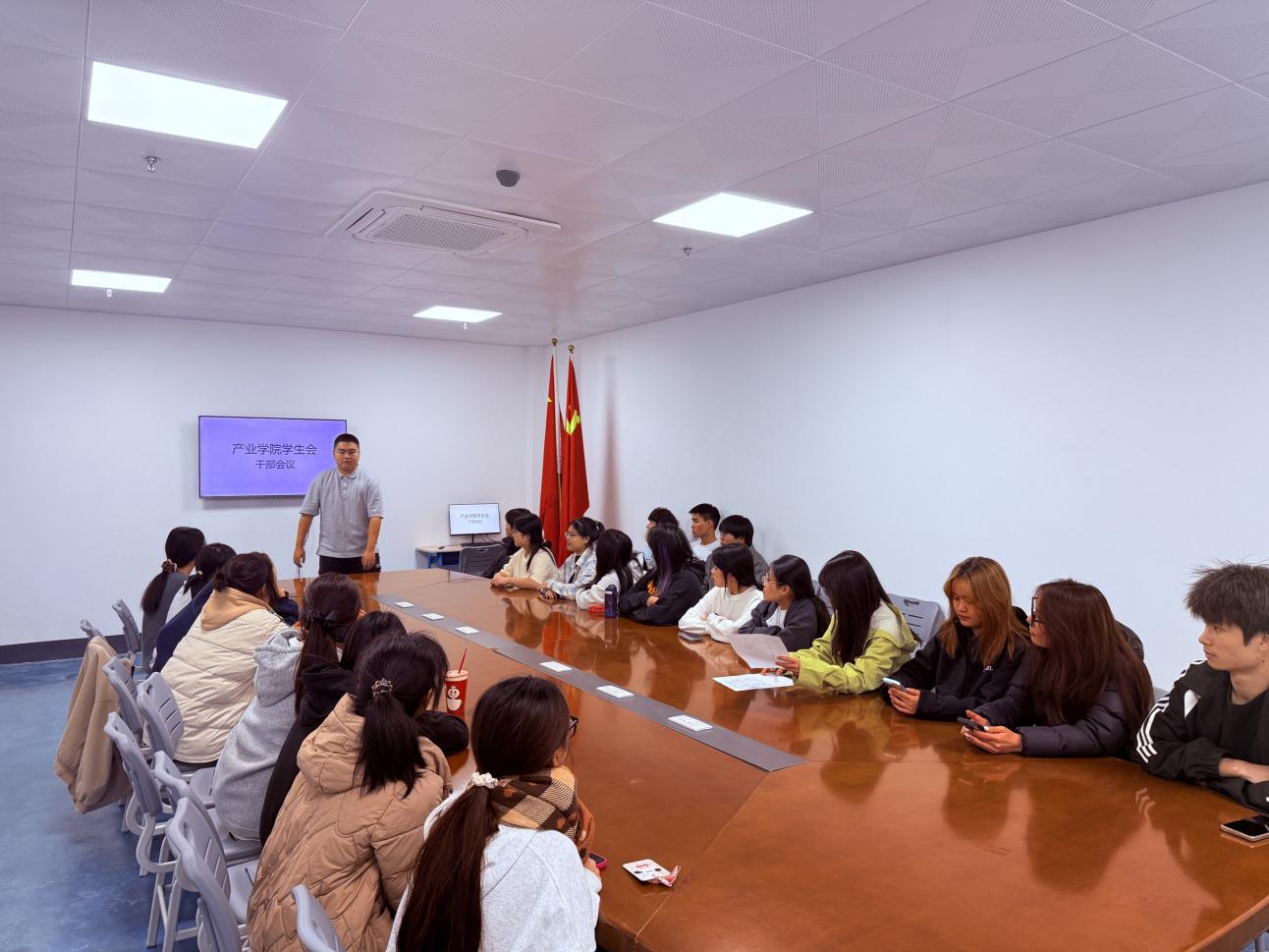 2025124日,低空经济产业学院学生会在党团活动室召开学生干部大会,学院全体团学干部参会。会议以“总结过往、规划未来、优化服务、凝聚合力”为核心主题,全面梳理本学期学生会工作成果,剖析当前团学工作面临的挑战,并对下一学期重点工作作出部署。