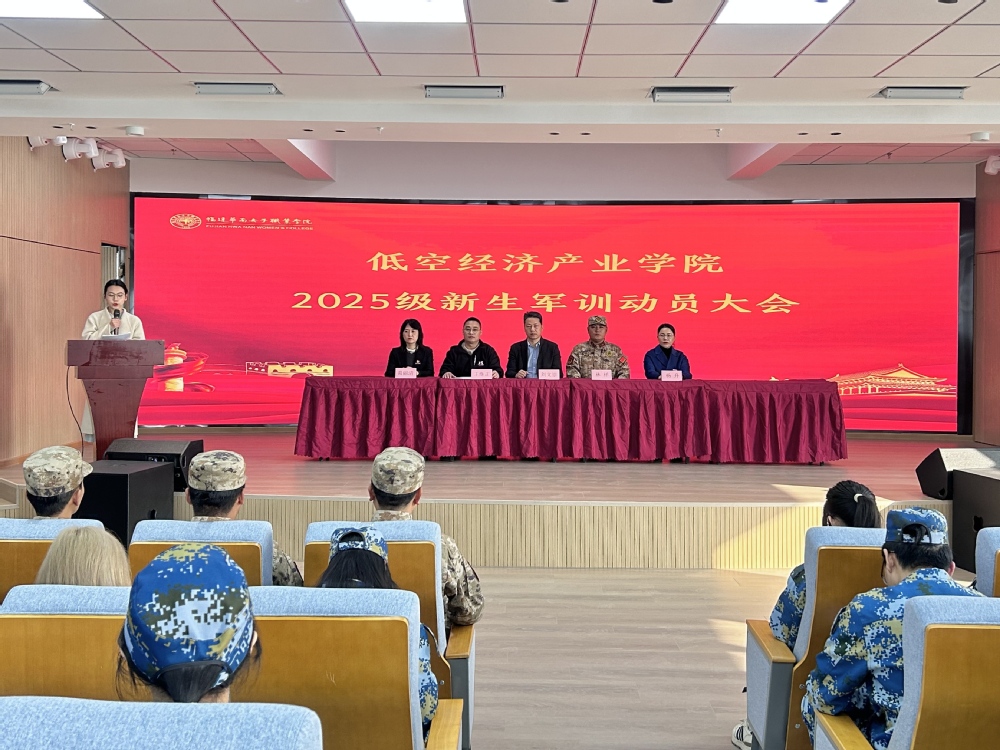 迷彩映冬阳,青春步铿锵。2025年12月18日,福建华南女子职业学院低空经济产业学院2025级学生军训动员大会在报告厅庄重举行,标志着为期两周的军事训练正式启幕。低空经济产业学院院长刘文崇、党总支副书记王继正、平潭县人民武装部带队教官林祥、副院长葛丽清、院长助理杨升出席此次动员会,承训教官、学院辅导员及全体受训学生共同参与。动员会由学院教学秘书王思颖主持。