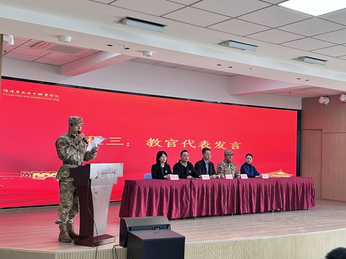 在动员讲话环节,党总支副书记王继正受学校党政领导班子委托致辞,向平潭县人民武装部给予的大力支持表达了衷心感谢,对全体承训教官表示热烈欢迎,并向为军训辛勤付出,默默奉献的学校各职能部门表示诚挚感谢。向即将踏上军训征程的全体同学表示亲切问候。王继正书记代表学校对全体受训学生提出三点期望:一要心怀敬畏,认真对待军训;二要奋勇拼搏,在挑战中超越自我;三要胸怀家国,以赤子之心肩负时代使命。