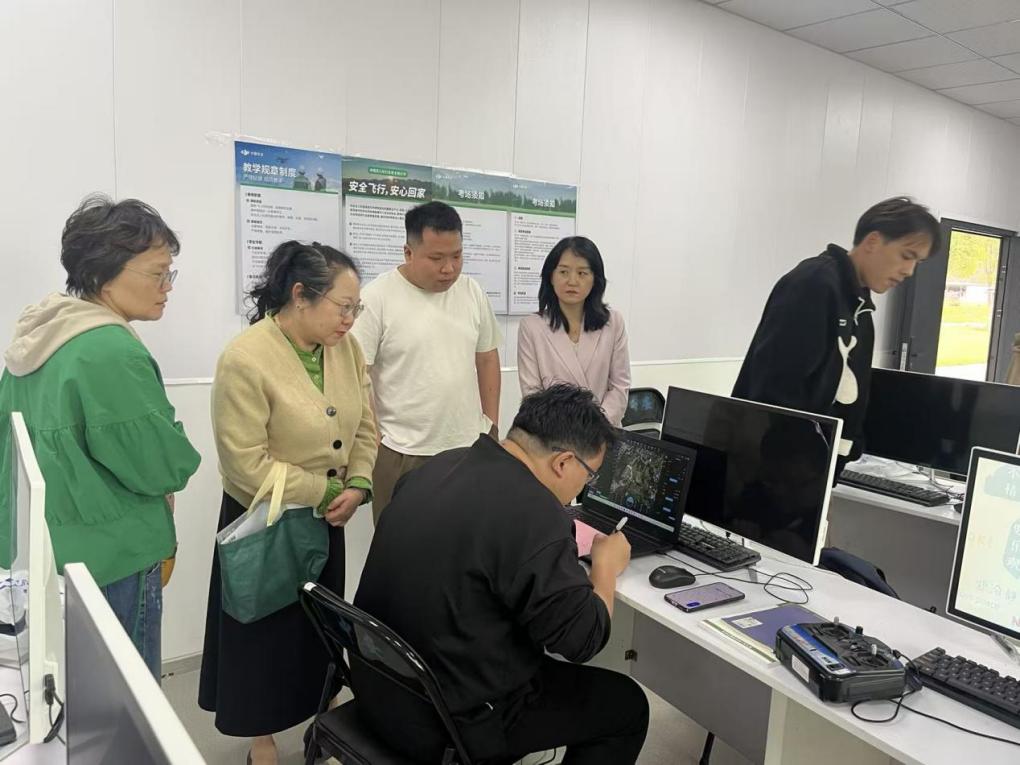 在调研过程中,黄磊晶副校长着重询问了实训基地的建设与运营情况。来到无人机展示区,基地负责人向黄磊晶副校长一行详细介绍了各类不同机型的性能特点、差异以及各自对应的应用场景,尤其着重讲解了当下CAAC无人机驾驶员执照培训的课程体系设置。黄磊晶副校长仔细询问了培训流程、考核标准以及学员就业情况等关键问题,并对基地在教学管理上的标准化、实训条件的专业化给予了肯定。