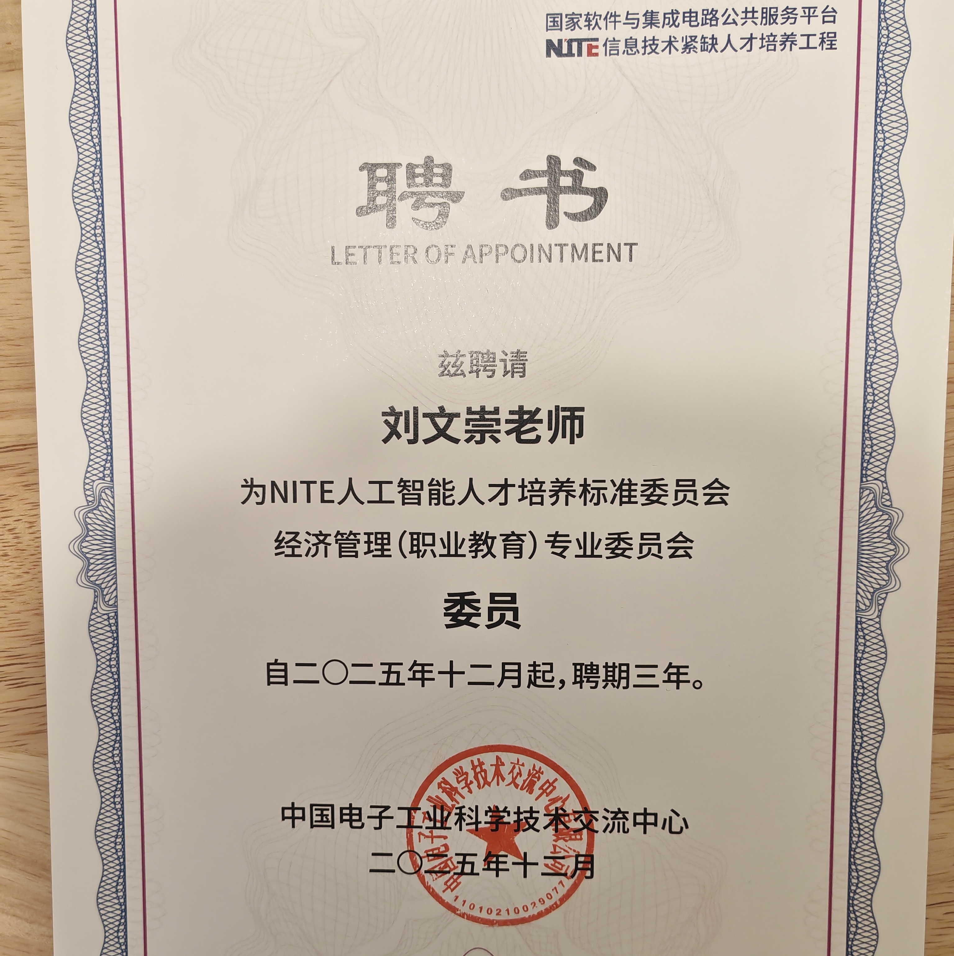 近日,2025 NITE人工智能教育与应用学术会议在西安成功举行。会上举行了NITE人工智能人才培养标准委员会委员颁授仪式,我院院长刘文崇凭借其在职业教育与经济管理领域的深厚积淀及行业影响力,成功获聘为NITE人工智能人才培养标准委员会经济管理(职业教育)专业委员会委员。此次获聘,不仅是对刘文崇院长在推动“人工智能+低空经济”交叉领域人才培养方面所做工作的认可,也为我院进一步...