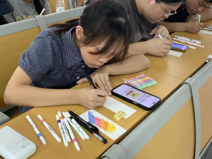 活动现场气氛热烈有序,同学们带着对阅读的热爱与对创作的期待,迅速投入到书签制作中,大家充分发挥想象力与动手能力,将阅读中的灵感与个人审美巧妙融合。创作之后,是思想的交汇。