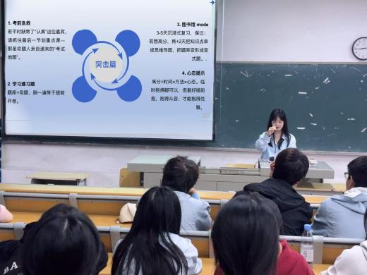 2024级大数据与会计专业陈芷昕学姐,作为2025上半学年的专业学业成绩第一。剖析个人学业成绩,带领大家深刻了解学业成绩的构成。从课程笔记整理、时间碎片利用到考前复习规划三方面讲解。同时建议同学们在专注学业发展之余,积极参加志愿服务、社会实践、社团活动,劳逸结合,拥有一个丰富的大学生活。