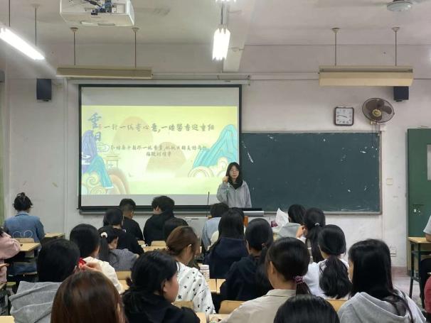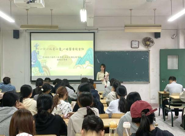 活动伊始,学生干部向同学们讲解了佩茱萸制香囊的历史渊源与文化寓意,从“佩茱萸避邪祈福”的古老典故到现代传承敬老美德的实践,生动的讲解让同学们更深刻地理解了传统民俗的内涵。