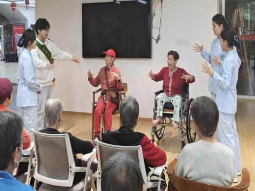 健康服务系的同学们则以互动康乐活动赋能长者健康,精心设计了适合老年人的康乐互动项目,带领长者们活动筋骨、锻炼肢体协调性与大脑反应力。长者在轻松愉悦的氛围中强健了身体,也感受到陪伴的温暖与情感的慰藉。