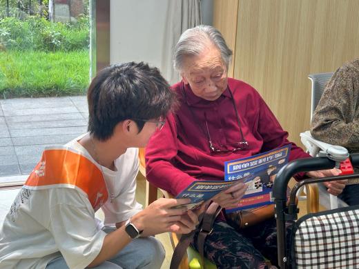 温馨互动间,一位老奶奶深情回忆起2023年春节前夕习近平总书记视频连线福州市社会福利院的情景,眼里满是激动与幸福。“一个社会幸福不幸福,很重要的是看老年人幸福不幸福。”“一定要让老年人有一个幸福的晚年。”——习近平总书记的殷殷嘱托,让在场师生深刻感受到国家对老年群体的重视与关怀,更坚定了用行动传递敬老温情的决心。