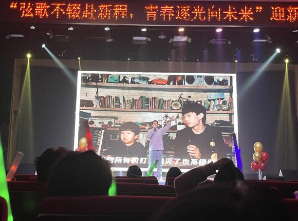 晚会穿插三轮抽奖环节,通过学习通群聊互动派送惊喜,现场欢呼声此起彼伏。辅导员邱大鹏老师倾情献唱《成都》,以温情旋律传递师生关怀;2024级学长学姐的大合唱《爱》更是点燃全场热情,为晚会画上圆满句号。