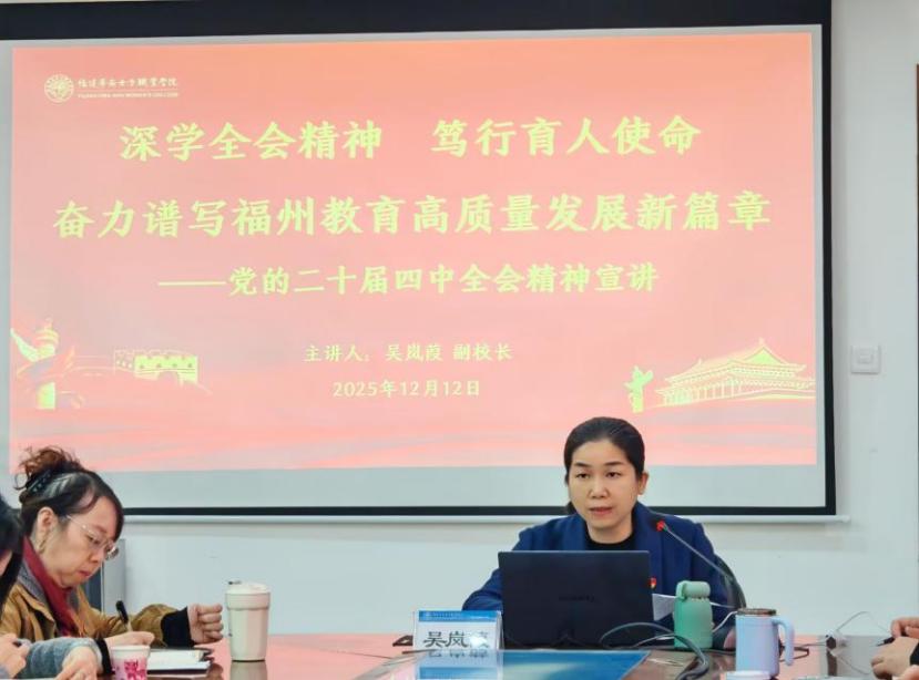 为推动党的二十届四中全会精神在基层落地生根,引导师生深刻领会全会核心要义与实践要求,12月12日上午,副校长吴岚葭莅临大数据应用系、国际商务管理系,以专题宣讲的形式带来了一场思想深刻、内容详实的精神盛宴。两系领导班子、教师代表及学生代表参加本次宣讲会。