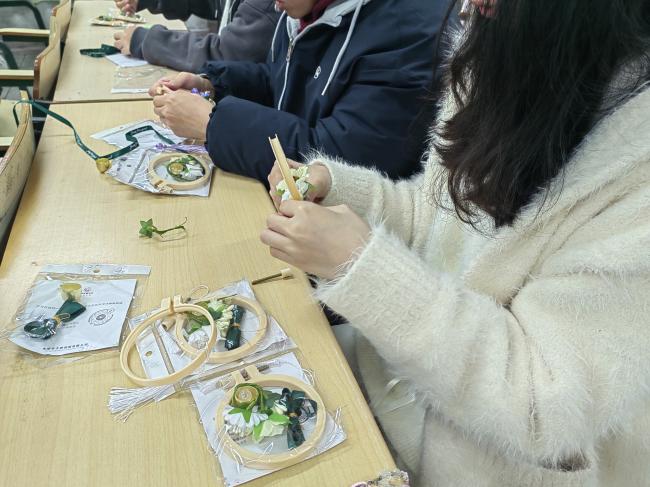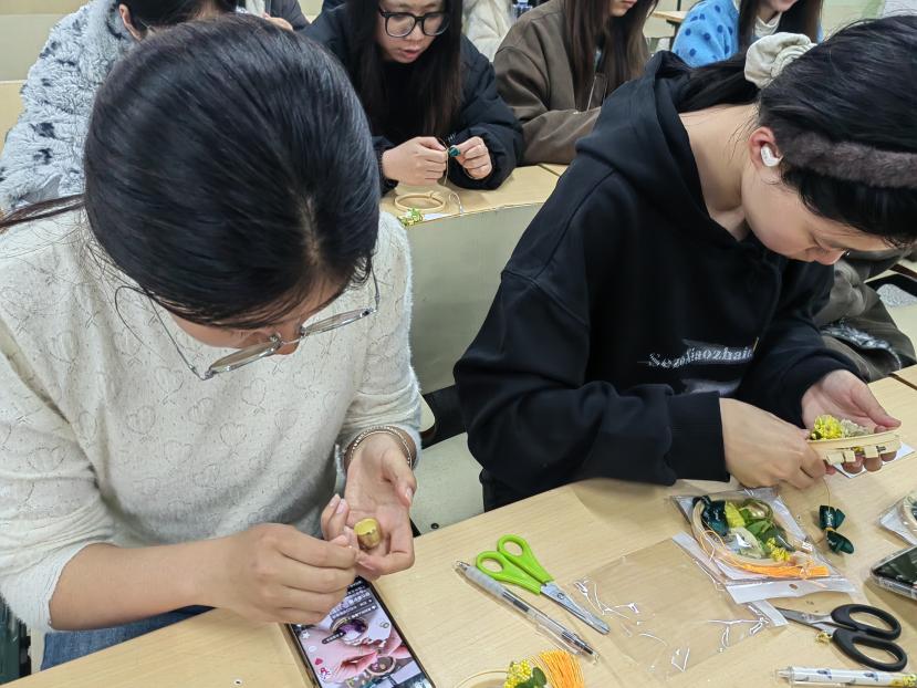 紧接着,同学们现场制作手工风铃,大家认真裁剪、细心组装,并亲手写下祝福卡片,将对女性力量的敬意与祝福融入每一个细节。风铃清脆悦耳,寓意着美好与希望,也象征着女性温柔而坚韧的力量。