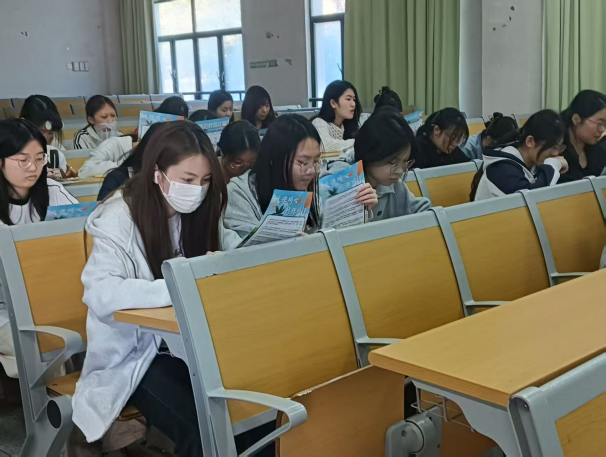 PPT宣讲结束后,现场播放反诈主题宣传视频,通过生动直观的视听内容,进一步还原诈骗场景、普及反诈常识,让反诈知识入脑入心。并且向全体同学发放反诈宣传手册与宣传单页,手册内容涵盖反诈警示标语、防骗口诀、举报渠道等实用信息,方便大家随时查阅学习、留存转发,切实将反诈知识带在身边、记在心里。通过生动直观的视听内容,进一步还原诈骗场景、普及反诈常识,让反诈知识入脑入心。同学们认真聆听、专注观看,主动学习反诈要点,现场学习氛围浓厚。