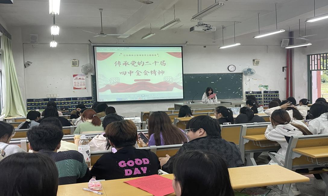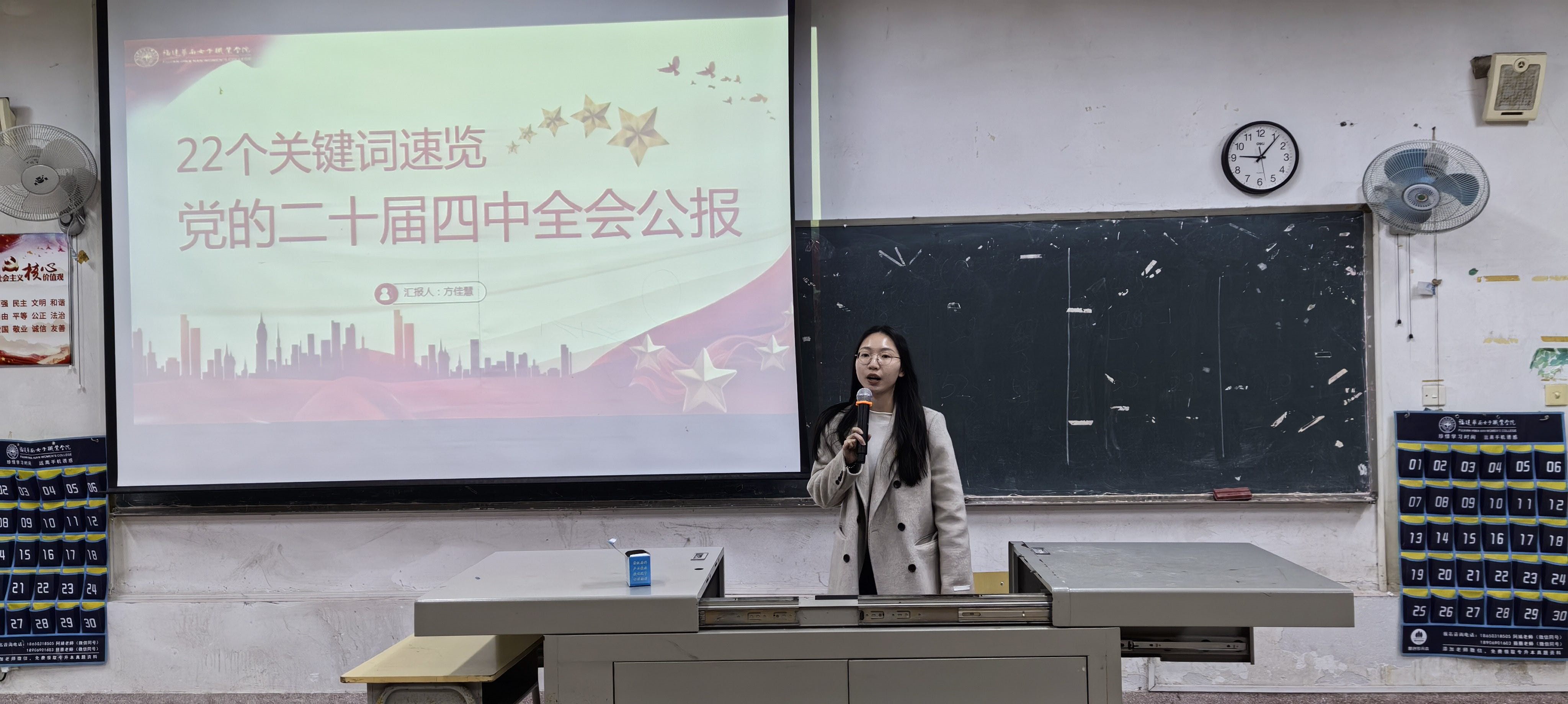 我系团总支书记方佳慧聚焦党的二十届四中全会精神核心要义,以“理论解读+案例分享”的形式,为在场学生普及宣传党的二十届四中全会精神,带动团员青年在倾听思考中明晰使命。此次宣讲以 “关键少数”带动“绝大多数”,让全会精神直抵青年心底,切实推动理论学习入脑入心。