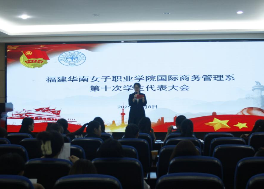 为进一步规范学生组织建设,充分发挥学生自治作用,切实提升服务师生效能,推动校园事务高质量发展,202569日,福建华南女子职业学院国际商务管理系第十次学生代表大会在余宝笙学术报告厅隆重举行。团总支书记方佳慧老师、学生党支部书记汤秋月老师、辅导员宋虹财老师应邀出席大会,系内全体学生代表共同见证系部学生工作的重要里程碑。