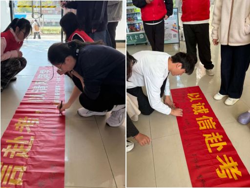 在主题横幅前,每一位参与者都郑重签下自己的名字,用笔墨定格诚信承诺,让“诚信应考”的信念深入人心;随后,大家前往教学楼区域,主动向过往同学宣传诚信考试的重要性,以耐心沟通、文明劝导的方式,倡导全体同学共同营造公平公正、纯净有序的考试环境。