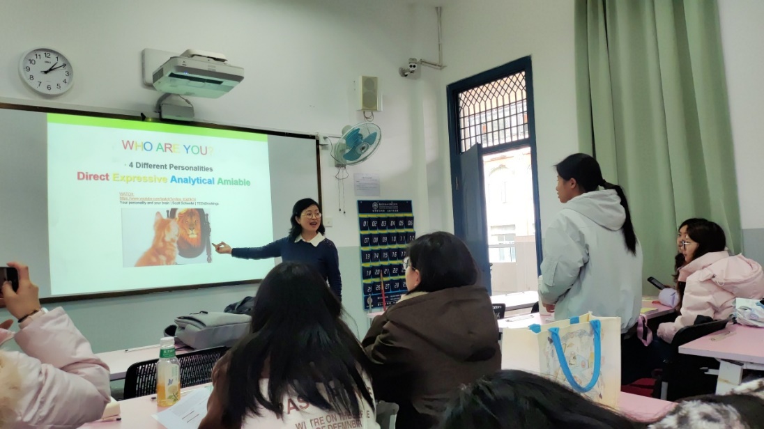 “商务沟通,从读懂对方的肢体语言开始”,张博士围绕肢体语言、职业关系与性格类型两大主题,将枯燥的理论转化为生动案例。课堂上,握手练习让同学们体会到力度与角度传递的不同信号;性格分析帮助大家理解不同文化背景下的沟通偏好;还通过职业关系案例,让同学们直观体会到文化差异对商务交往的影响......面对同学们踊跃提问,张开玫博士结合自己多年职场经历,一一解答如何在跨文化场景中解读对方意图、实现高效沟通。课程最后,她还分享职业教育理念,鼓励同学们兼顾 “知识、技能、专业态度” 全面提升。