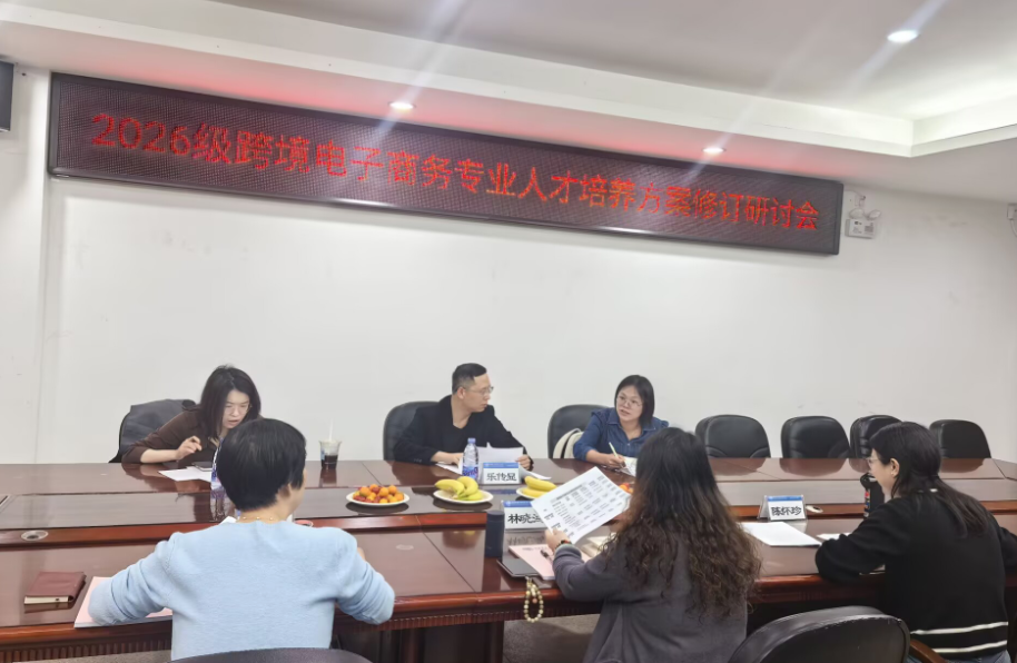 为主动适应跨境电商“品牌出海”“AI赋能”的行业新趋势,推动专业课程体系与产业需求“零距离”对接,4月7日下午,国际商务管理系跨境电子商务专业在综合楼一楼会议室召开跨境电子商务专业2026级人才培养方案修订研讨会。会议特邀行业企业专家与兄弟院校骨干教师共同“问诊把脉”,为专业建设注入一线智慧。