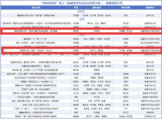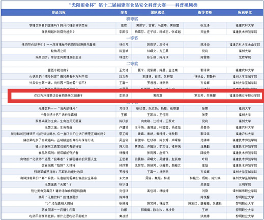 近日,由福建食品科学技术学会主办的第十二届“光阳蛋业杯”福建省食品安全科普作品大赛结果揭晓,我系师生荣获佳绩。
