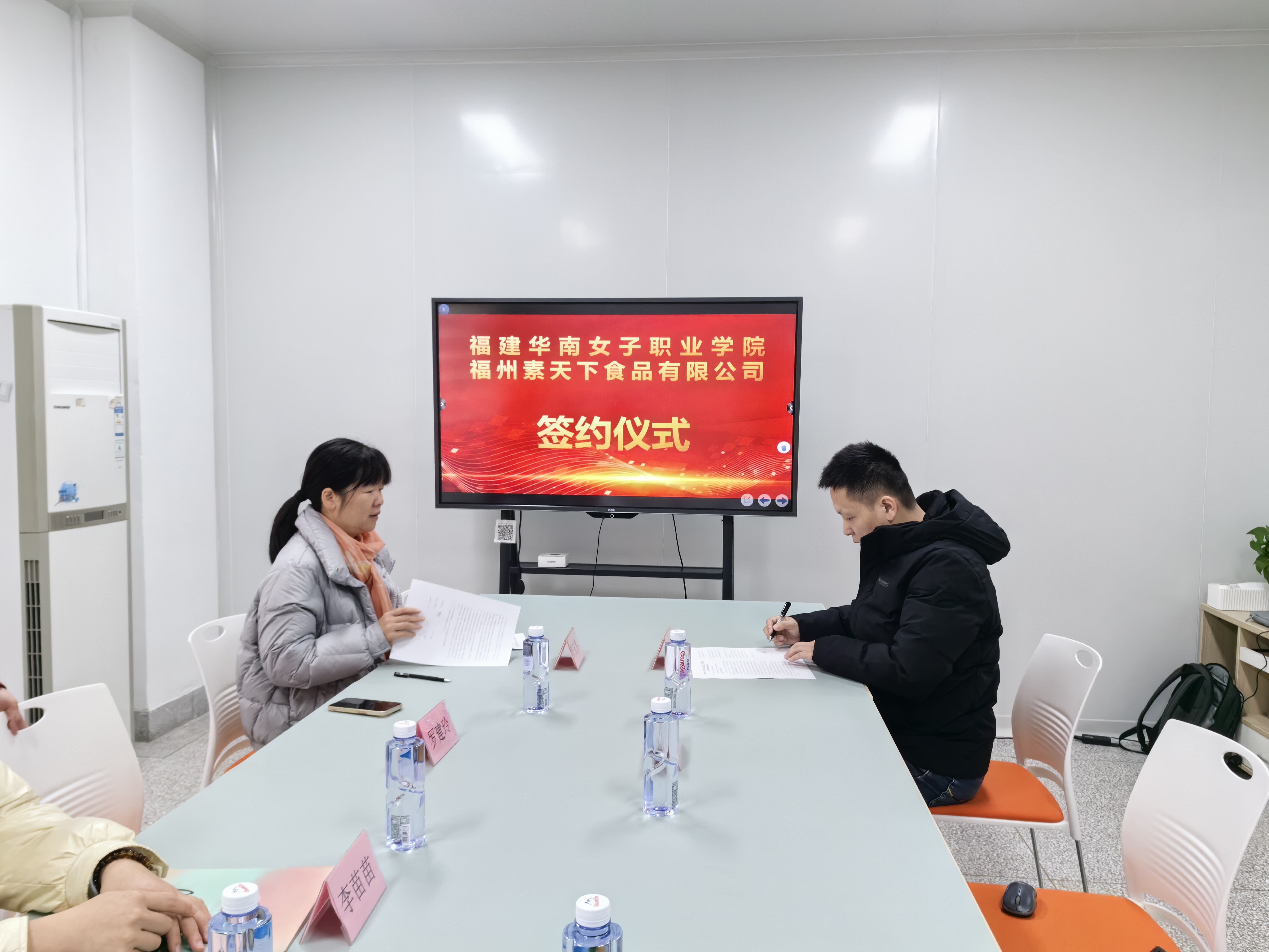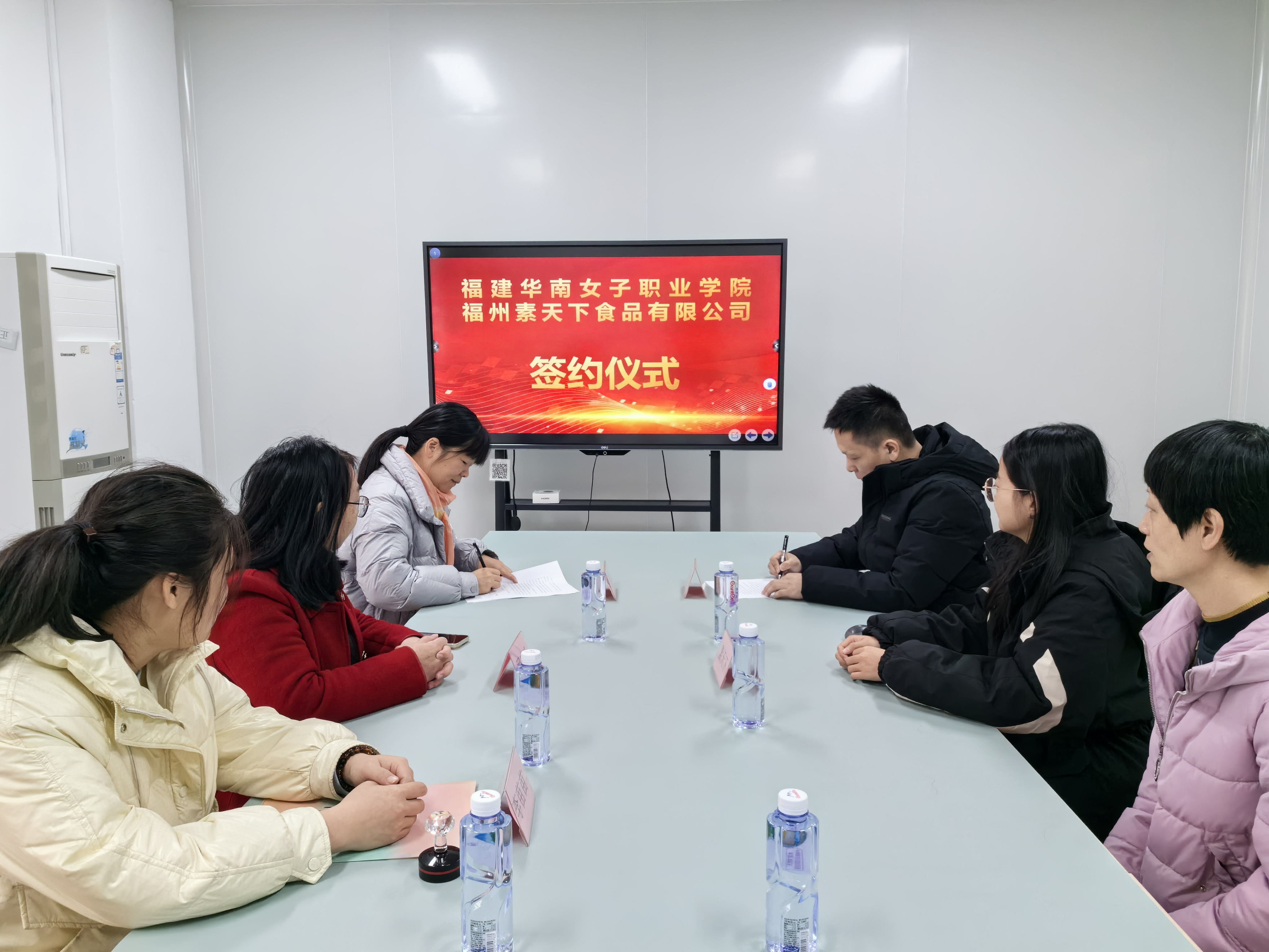 为进一步深化产教融合,提升专业人才培养质量,拓展学生实习实训与就业平台,2026年1月6日上午,健康服务系与福州素天下食品有限公司隆重举行校企合作签约。福州素天下食品有限公司董事长助理邓荣华、健康服务系系主任罗玉芳、食品营养与健康专业主任罗建玲、食品检验检测技术专业主任李苗苗及相关专业教师共同出席本次活动。