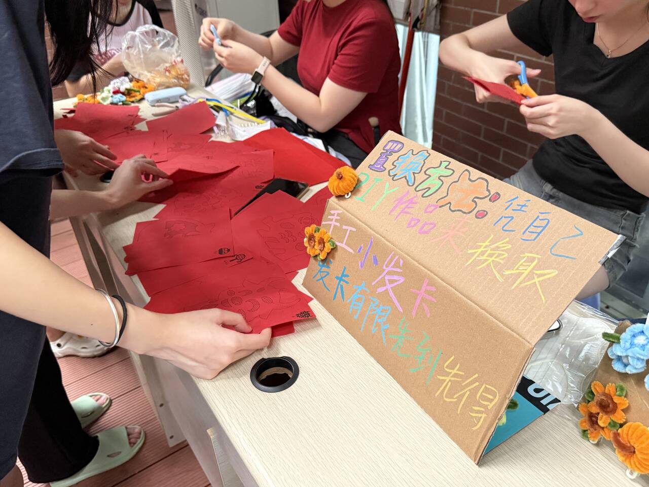 活动现场打造了三大特色环保手作体验区,并配备了基础材料包。在“再生之美”废物改造区里,参与者巧用旧纸袋、旧瓶子、旧衣物等材料创作精美的收纳盒、装饰品等作品,现场通过参与者们的“增值点赞”,评选出“最佳重生作品”。在“纸上芳华”剪纸艺术区里,参与者将感受传统技艺与环保理念进行碰撞,用再生纸创作融合传统纹样与现代创意的剪纸作品。在“扭趣自然”扭扭花工坊里,参与者用环保扭扭花棒制作永不凋零的创意花艺,定格自然之美。