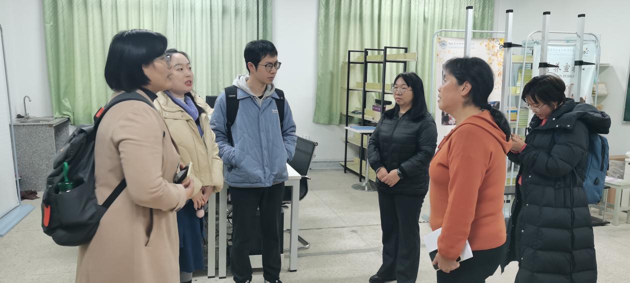 会后,调研团队实地走访了我系营养咨询中心、健康评估实训室、营养配餐实训室、食品工艺实验室、微生物实训室等场所。罗玉芳主任及专业教师详细讲解各实训场所在教学实践、技能训练、科研创新中的功能定位与应用成效,并现场演示部分专业设备的操作流程。参观过程中,双方就实训资源管理、学生实践能力培养等细节进行了交流。