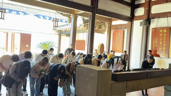 活动中,师生们怀着崇敬的心情步入纪念馆,开启了一场沉浸式的红色教育实践活动。作为纪念民族英雄林则徐的重要专题场馆,林则徐纪念馆承载着厚重的历史与人文内涵,馆内的陈列展品、历史场景与珍贵史料,生动再现了林则徐为官清正、力主抗敌、虎门销烟的光辉一生。在讲解员的细致引导下,师生们逐一驻足参观,认真聆听林则徐 “苟利国家生死以,岂因祸福避趋之”的爱国壮举,深切感悟他心怀家国、坚韧不拔的民族气节与担当精神,对这位“开眼看世界的第一人” 的精神内核有了更为深刻的理解。
