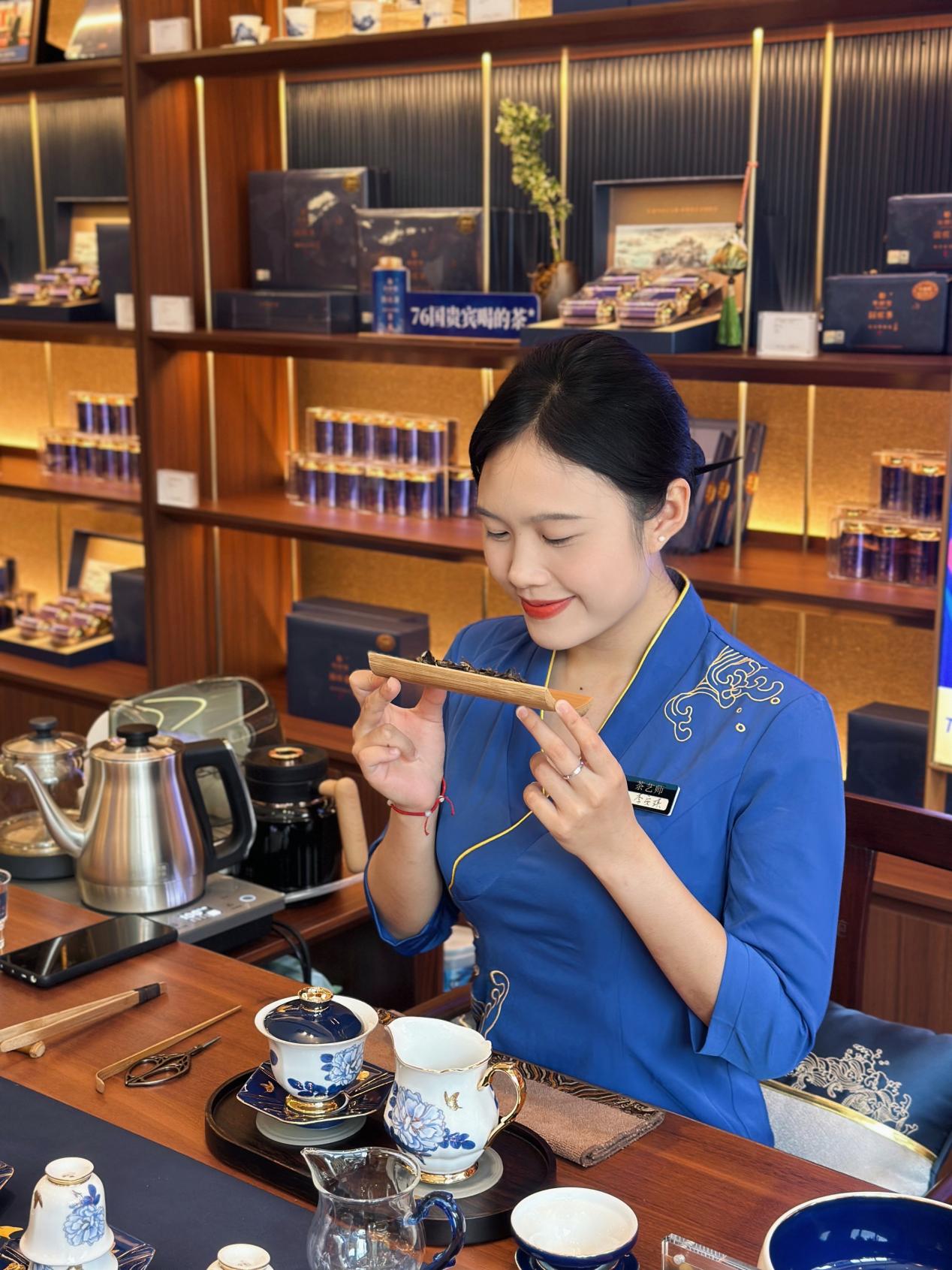 走进华祥苑,我们能看到李安琪同学忙碌而专注的身影。这位表现优异的实习生,总能泡出恰到好处的茶汤,还会温柔地为客人讲述茶叶背后的故事,细致解答关于品类、冲泡、储存的种种疑问,让茶文化在交流中愈发鲜活。