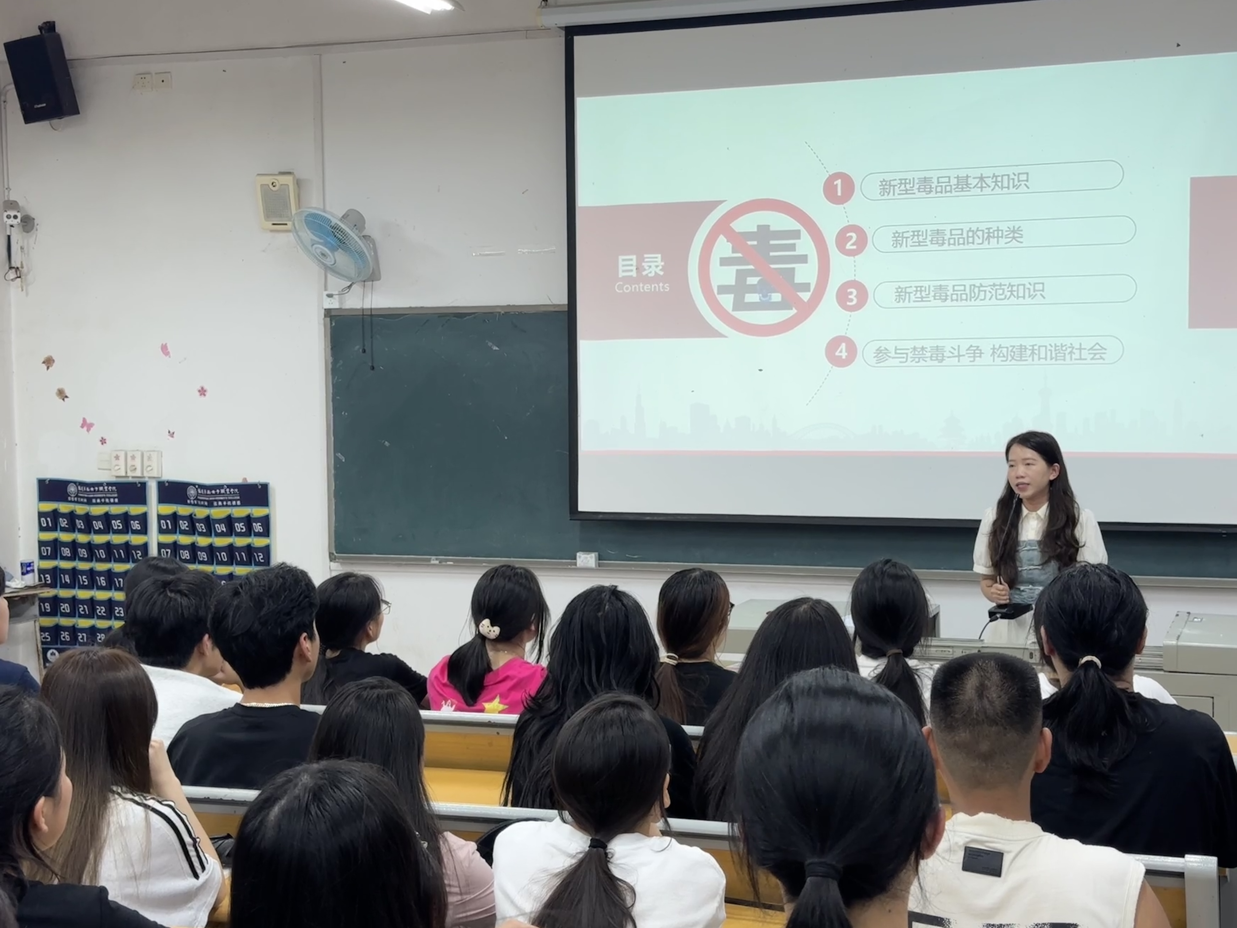 活动亮点突出、内容扎实:一是 “干货课堂” 拆解毒陷阱,廖哲仪老师系统讲解毒品种类、特征与危害,重点聚焦伪装成 “奶茶粉”“巧克力”“电子烟” 的新型毒品,结合近期真实案例拆解识别技巧,并传授 “借口离开”“及时求助” 等拒毒方法,为学生筑起“防毒墙”;二是 “影视观学”敲醒安全钟,组织观看福建禁毒部门官方视频,通过触目惊心的真实案例与科普解读,让学生直观感受毒品对个人、家庭、社会的致命危害;三是“心得分享”深化认知,新生结合所学踊跃发言,交流“认清身边毒风险”“掌握拒毒技巧”等感悟,推动禁毒知识入脑入心。