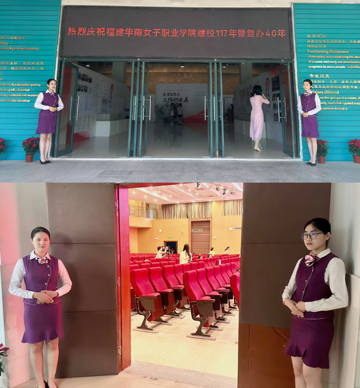 旅游服务系空中乘务专业的20名学生担任礼仪志愿者。无论是场馆入口处的礼仪引导,还是会场通道的秩序维护,她们以标准的站姿、亲切的微笑,为来宾提供专业、贴心的服务,用周到的礼仪工作为校庆活动的有序开展奠定了良好基础,成为校园里传递温暖与专业的青春名片。
