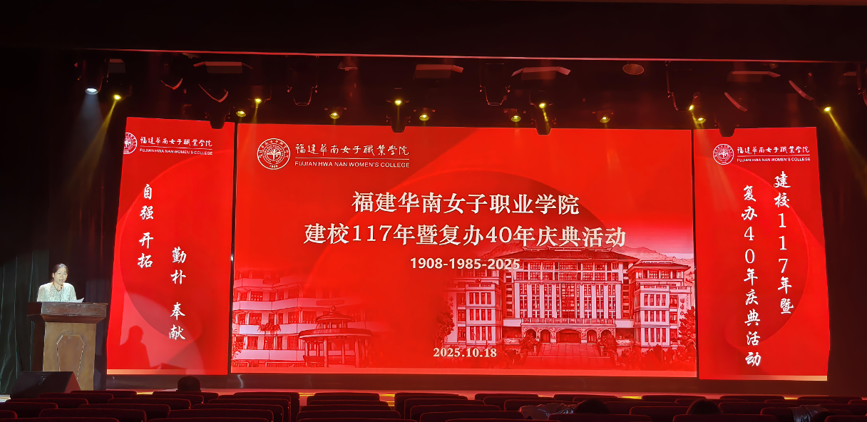 2025年10月18日,福建华南女子职业学院建校117年暨复办40年庆典活动顺利举行。庆典现场以红色为主调,巨型屏幕上清晰呈现“1908-1985-2025”的时间脉络,搭配校园主建筑剪影,彰显华南跨越一个多世纪的底蕴。活动秉持“自强、开拓、勤朴、奉献”的校训精神,回顾华南从1908年创办、1985年复办以来的发展历程,凝聚师生校友力量,共话未来发展蓝图。