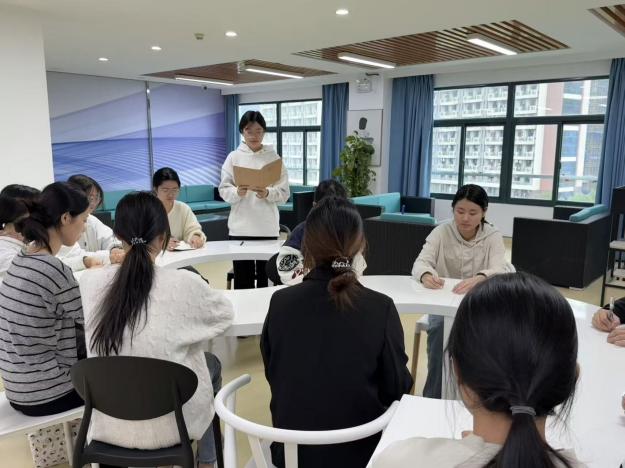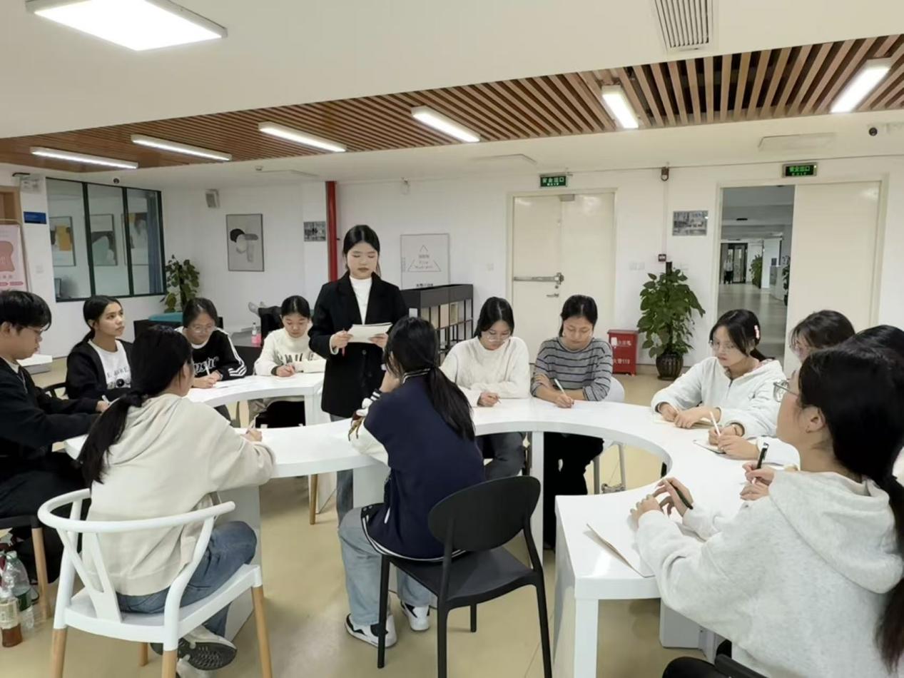 为深入学习贯彻党的二十届四中全会精神,引导青年学生锚定奋斗方向、勇担时代使命,2025年11月11日,旅游服务系依托“薪火知行”辅导员工作室,组织“薪火研习”读书社成员在学校图书馆数字共享空间开展专题讨论学习。本次会议由旅游服务系团总支(学生)副书记邱倩琳同学主持,“薪火研习”读书社成员参与。