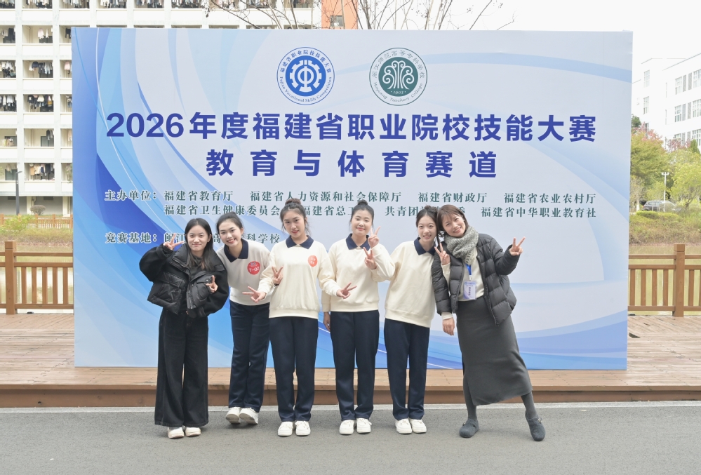 2026年度福建省职业院校技能大赛高职组教育与体育类赛项大赛圆满落幕。我校贾立倩、魏诗颖两位老师共同指导的我校学前教育专业学生卞臻颜、陈欣、黄欣恬、林佳佳,荣获二等奖。