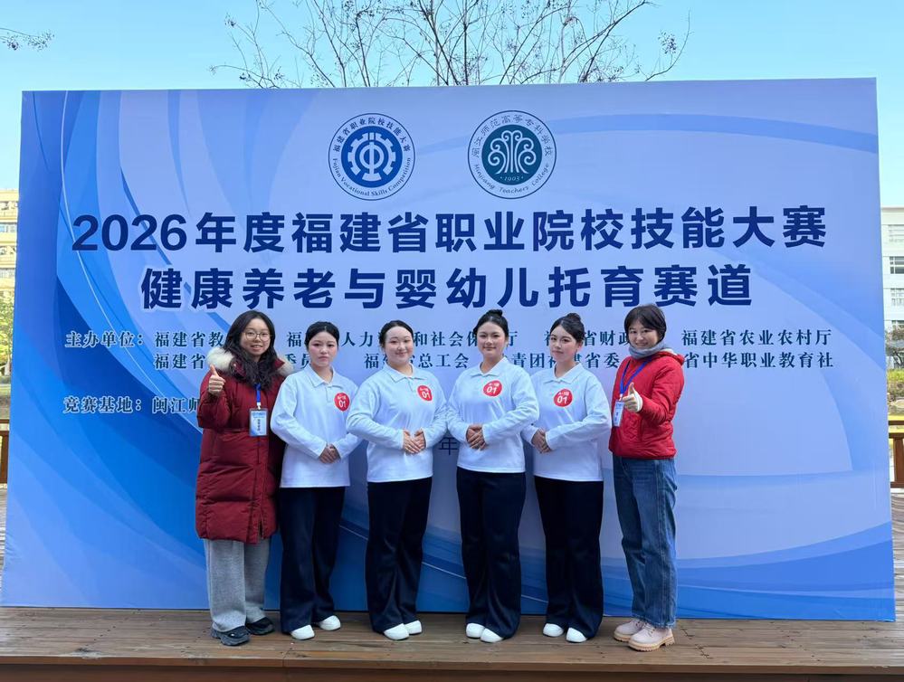 2026年度福建省职业院校技能大赛高职组健康养老与婴幼儿托育赛项大赛圆满落幕。我校毛欣梅、于磊两位老师共同指导的我校早教专业学生茹晨瑶、蒋紫涵、蔡燕琳、陈琳,荣获三等奖。