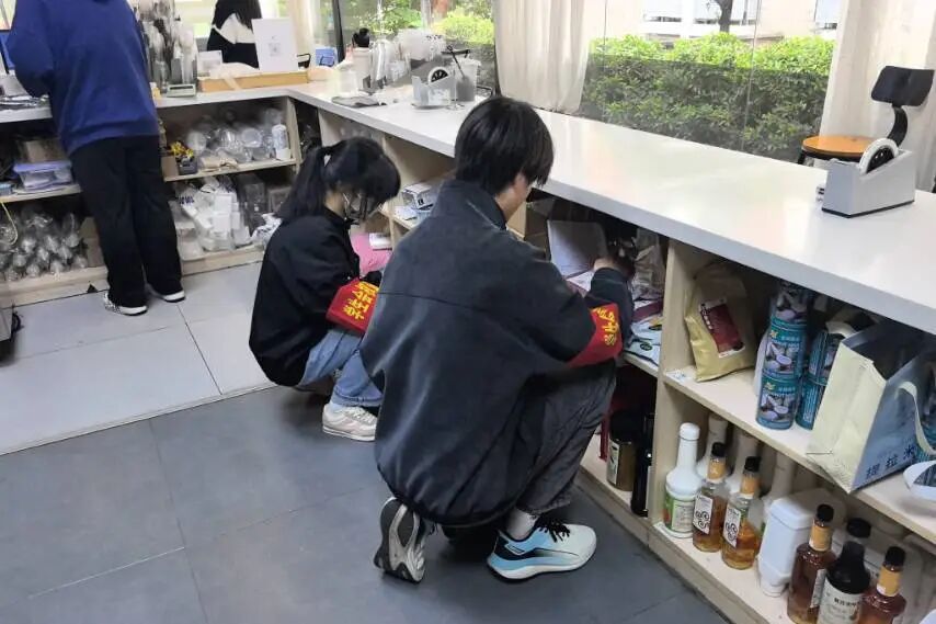 活动期间,权益部先后走访了校园内2家超市及2家奶茶店,聚焦消费安全核心环节开展专项核查。在超市走访中,队员们检查食品、日用品等商品,严查过期商品、临期未标注商品,同时细致核查商品陈列规范度与价格标签清晰度,全力确保同学们的购物环境合规透明,杜绝消费陷阱。在奶茶店核查中,队员们重点关注卫生环境与操作流程,从前厅就餐区清洁、后厨卫生整理,到食材储存条件、餐具消毒情况,逐一排查细节,同时观察工作人员操作规范性,经核查,两家奶茶店均符合经营标准,为同学们的饮品消费筑牢安全屏障。
